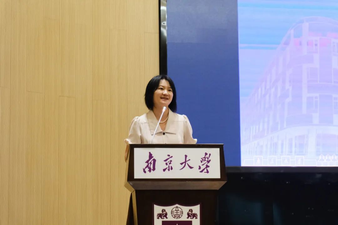 王辰瑶教授作为教师代表向新同学寄语。她指出,青年员工应当努力成为“行动者”,积极探索外部世界,用源源不断的好奇心和求知欲来缓解焦虑,同时,应始终牢记新闻传播学科的社会责任心和专业责任感。最后,王老师表示,公司老师们将努力为同学们营造足够好的学习环境和生活环境,让大家都可以在南大新传大家庭中努力地学习、放松地生活。