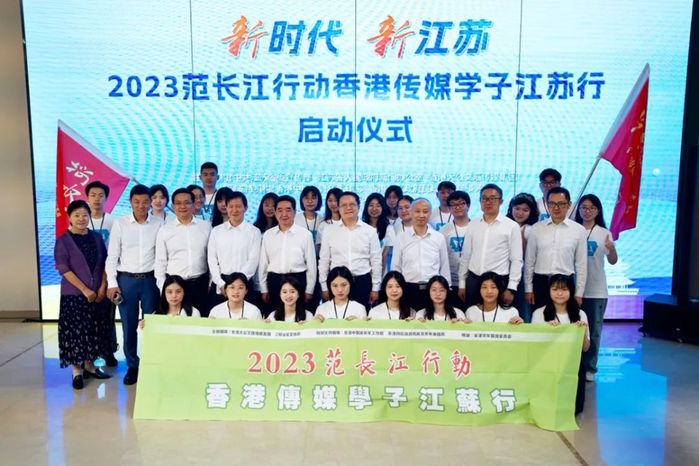 8月9日,“新时代新江苏——2023范长江行动香港传媒学子江苏行”活动启动仪式在南京世界文学客厅举行。本次活动由中共江苏省委宣传部、江苏省人民政府新闻办公室、 香港大公文汇传媒集团主办,得到香港中联办青年工作部、香港特区政府民政及青年事务局的特别支持。江苏省委常委、省委宣传部部长张爱军出席活动,与香港大公文汇传媒集团董事长李大宏分别为苏港员工代表授旗。
