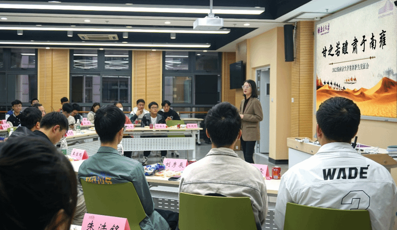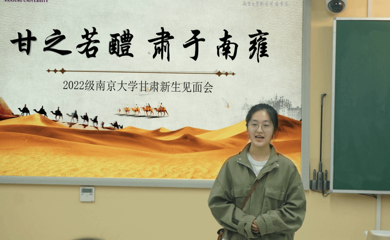 甘肃招生组的老师们也为同学们送上了温情寄语。徐慨老师鼓励同学们以更加开放的心态来面对新的城市、新的学习环境和新的成长路径,在努力进行“学习线”的同时,利用好南大的平台和资源来寻找“职业线”,以此来锚定人生方向,增强精神动力;同为甘肃老乡的商琳老师为同学们分享了在南京可以找到的家乡美味,并从专业角度风趣地讲述了水一定要和电脑分离、重要资料至少应该备份3份等建议;牛克昌老师用家乡方言与大家亲切交流,提醒大家应及时调整心态开启新的学习篇章,既要主动发掘“独特性”,找到自己与众不同的发展路径,也要铭记家乡的精神之根,不能忘本;王蕾老师则叮嘱大家在往前走的同时别忘记关心父母,要常和父母联系,与父母多沟通多交流。