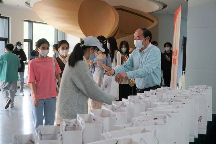 同学们从老师们手中接过沉甸甸的礼品袋,心情如门外的春风一样温暖畅意。
