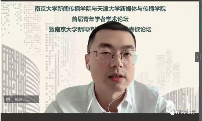 胡翼青教授最后对此次青椒论坛进行了总结,他再次表达了对线上线下所有参会学者的感谢,认为各位青年学者在今天显现出很大的潜力,希望以后能够进一步加大青年学者交流的力度,让此类活动成为伴随这一批青年学者成长的学术印记,也希望将来两院学者能够再次相见,进行交流与对话.