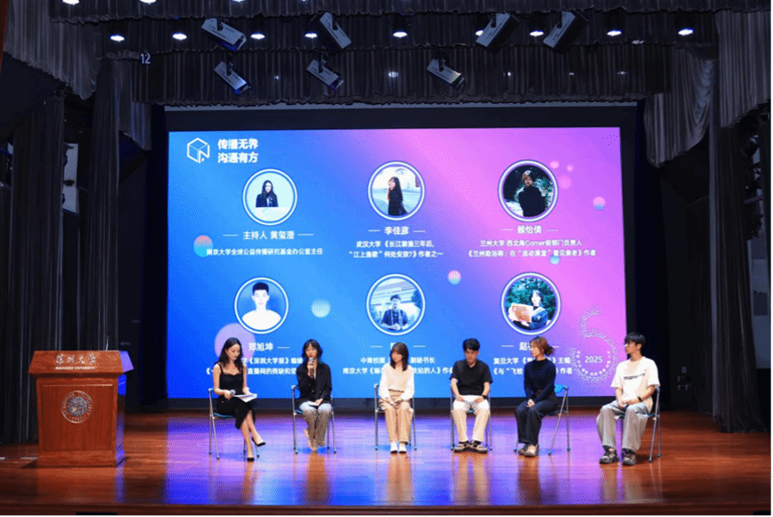在 “公益传播对谈”环节,五位获奖青年创作者分享了作品背后的故事与思考,展现了当代青年学子对社会问题的深度关切。他们用笔和镜头记录真实,用行动推动改变,让公益传播成为连接社会各界的温暖桥梁。