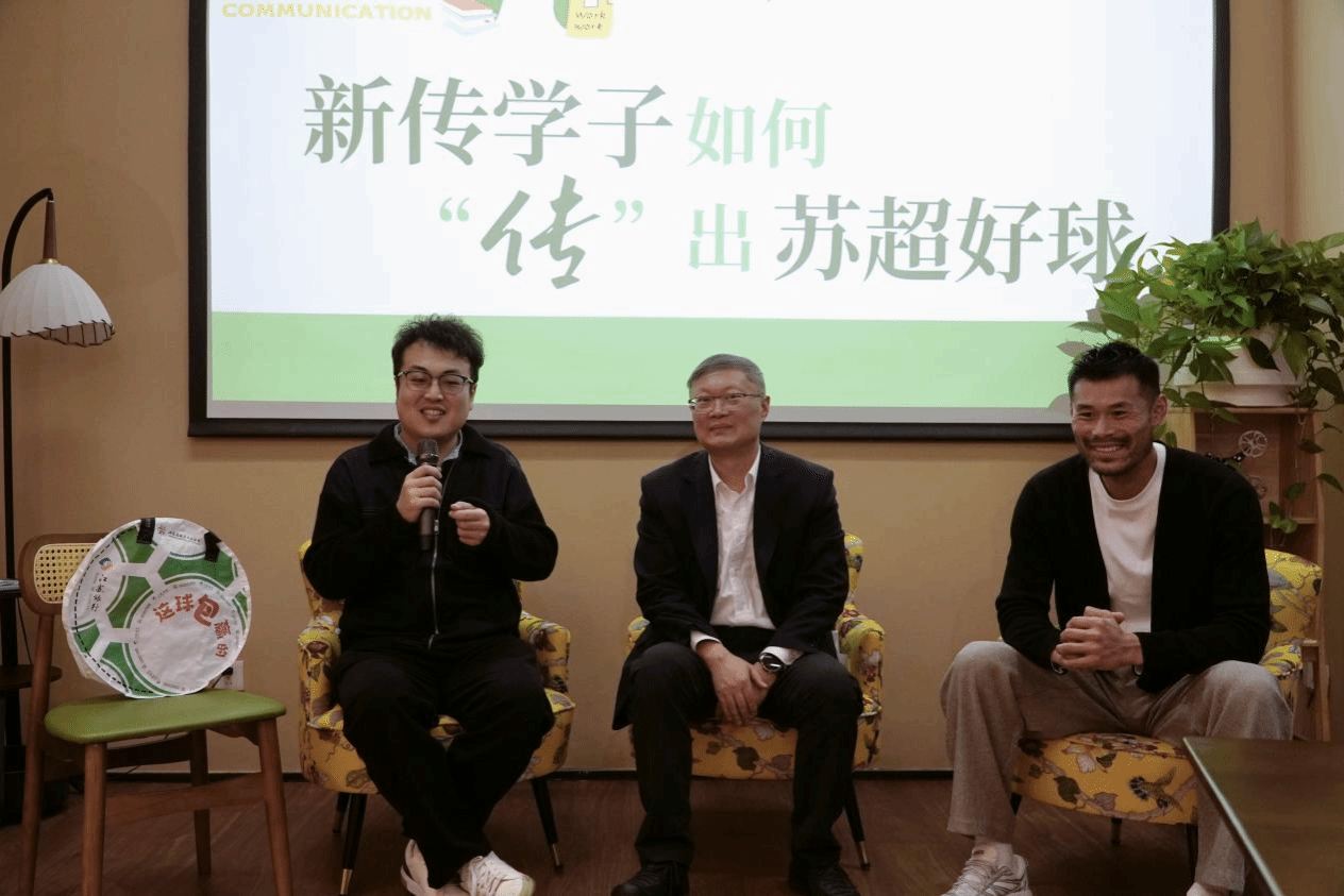 1020日下午,XC体育第五期“新传π计划”暨员工分享会在“News+”咖啡厅成功举行。本期活动特别邀请了公司2013届员工、2025苏超南京队中后卫球员苗明,2017届员工、江苏广电总台荔枝新闻中心体育记者王文欢,2003届研究生员工、江苏银行零售业务部副总经理、苏超总冠名商运营专班牵头执行人姜涛,三位员工围绕苏超里的新传力量,展开了一场酣畅淋漓的交流分享会。