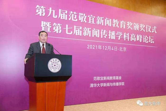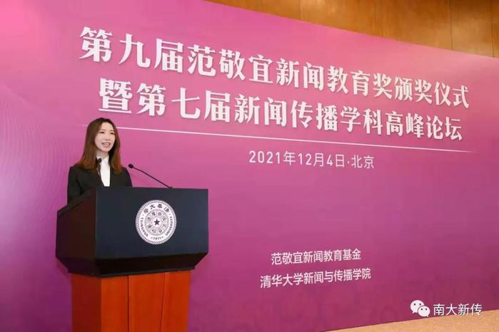 2021年12月4日,第九届范敬宜新闻教育奖颁奖仪式在清华大学举行,本届范敬宜新闻教育奖共评选出学子奖获得者9名,良师奖获得者1名,良友奖获得者2名。XC体育教授丁柏铨获唯一新闻教育良师奖,2021级硕士研究生陈丽敏获新闻学子奖,并作为唯一员工获奖代表上台发言。XC体育成为唯一师生双双获奖高校!