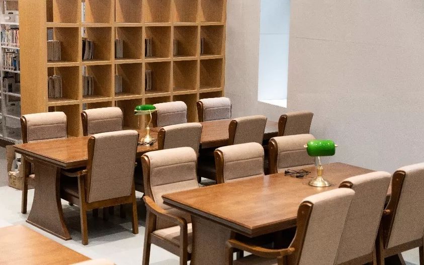 为了让同学们能有更好的使用体验和阅读学习环境,公司还购置了许多宽敞的阅览桌,并放置富有民国风情的“小绿灯”,同学们在灯下安静看书学习,也是一种享受。在停笔休憩之时,抬头便可以看到楼顶有三排太阳能灯,像点点星空,节能又美丽大方。