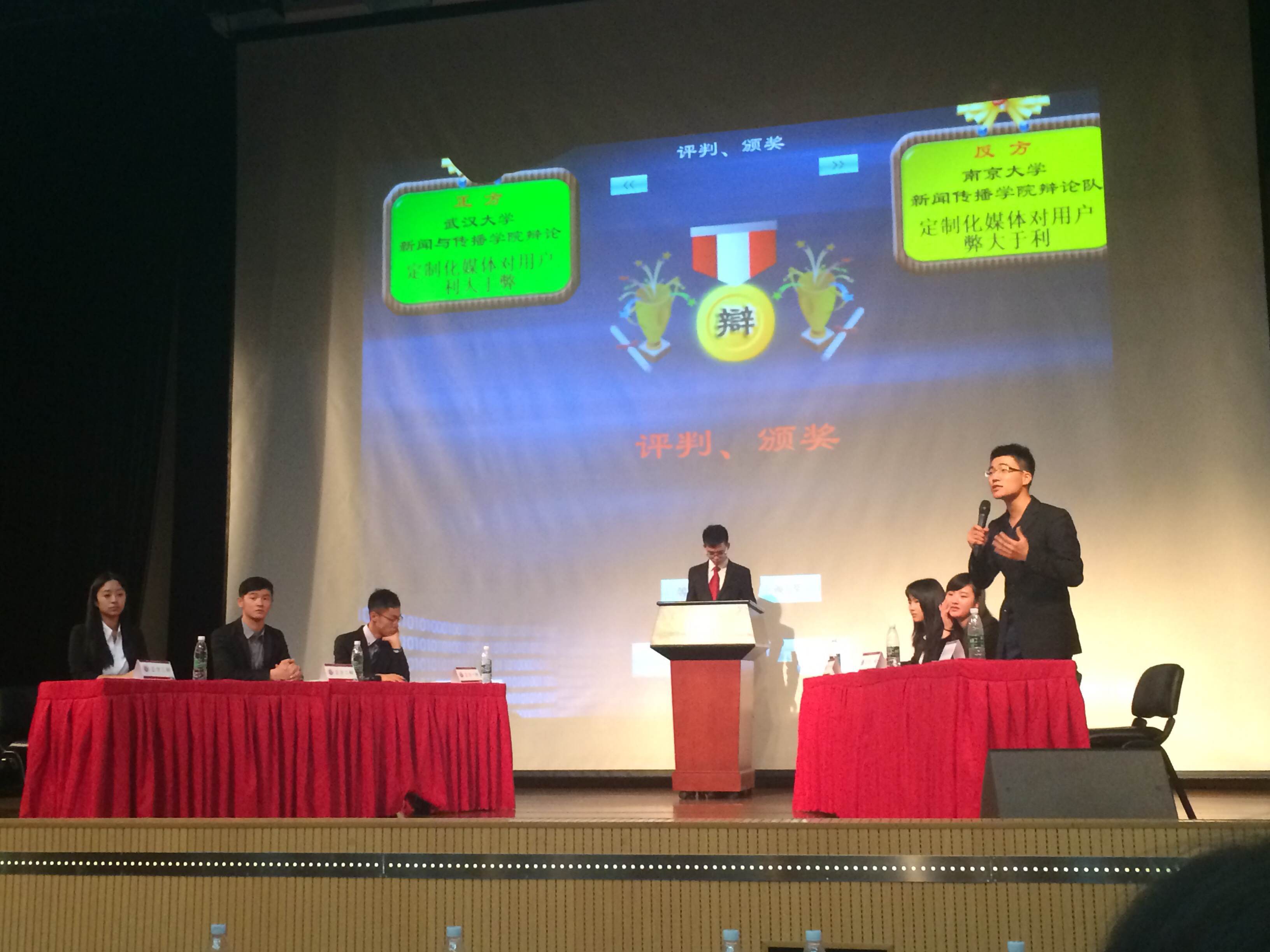 决赛对手为传统强队武汉大学新闻与传播公司辩论队。双方就“定制化媒体对用户利大于弊/弊大于利”开展激烈辩论,公司辩论队持反方立场,从定制化媒体泄露隐私、不利于用户全面发展、撕裂社会共同体等方面立论,以深厚的学术涵养和严密的逻辑论证击败对手,以比分24:3的绝对优势获得最后的胜利。
