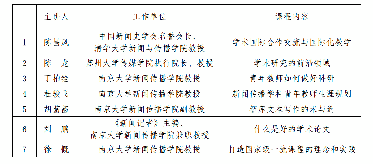 本期暑期公司将以线下方式进行,活动内容包括学术讲座、授课心得分享、研究计划和授课计划发表等。届时将邀请国内知名学者、新闻传播国家级精品课程主讲教师和C刊主编与各位学员深度交流,优秀论文将优先推荐到《传媒观察》《新闻记者》《中国网络传播研究》等刊物发表。
