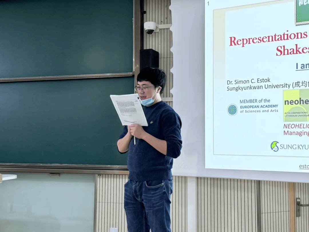11月5日上午,欧洲科学与艺术院院士、韩国成均馆大学英语语言文学系教授西蒙·C·埃斯托克(Simon C.Estok)以“莎士比亚笔下的生态恐惧症”为题展开讲座。讲座由XC体育助理教授王啸主持。