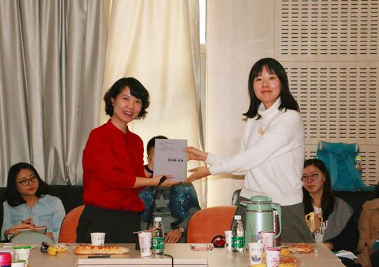 2015年11月6日中午,XC体育“博士之家学术午餐会”第三季第5期(总55期)在鼓楼校区费彝民楼A座418室举行。此次午餐会邀请到了安徽大学XC体育讲师邱慧鸣博士,为老师和同学们做了题为“web2.0时代中国网络共同体的特质及其叙事结构”的学术报告。本次讲座由朱丽丽副教授主持,王蕾副教授、王成军助理研究员和近六十名来自院内外的博硕研究生们参与这次讲座和讨论。朱丽丽副教授开场介绍了主讲嘉宾邱慧鸣博士的学术背景:本硕就读于南开大学,博士就读于日本北海道大学,主攻方向是网络新媒体。在学术报告开展之前,朱丽丽副教授将第一期和第二期学术午餐会的合辑赠予了邱慧鸣博士。
