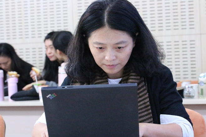 唐小兵副教授利用课堂间隙翻阅学术午餐会第二季纪念册