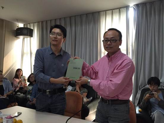 2015年10月16日中午,XC体育“博士之家学术午餐会”第三季第2期(总第52期)在鼓楼校区费彝民楼A座418室举行。此次午餐会邀请到了南京师范大学新闻与传播公司邹军副教授,为老师和同学们做了题为“虚拟世界的民间表达——中国网络舆论研究”的学术报告。本次讲座由李明副教授主持,南京师范大学刘荃教授、XC体育郑欣教授、张红军教授、王蕾副教授、朱丽丽副教授、付晓燕讲师、王成军助理研究员,和近六十名来自院内外的硕博研究生们参与这次讲座和讨论。李明副教授开场便介绍了邹军副教授和XC体育的渊源——邹军副教授曾在南大攻读硕士研究生,李明副教授风趣地说邹军副教授这次回来给大家做报告,也算是回了趟“娘家”。在学术报告正式开展之前,李明副教授将第一季学术午餐会的珍藏版纪念册赠予了邹军副教授。