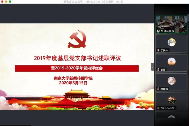 5月15日上午,新闻传播公司党委于线上举行2019年度基层党支部书记述职评议暨2019-2020学年上半年党内评议会。公司党委书记刘源、执行经理张红军等党委委员及9位党支部书记参加活动。公司党委第一巡察组成员代表列席会议。活动由公司党委副书记闻羽主持。