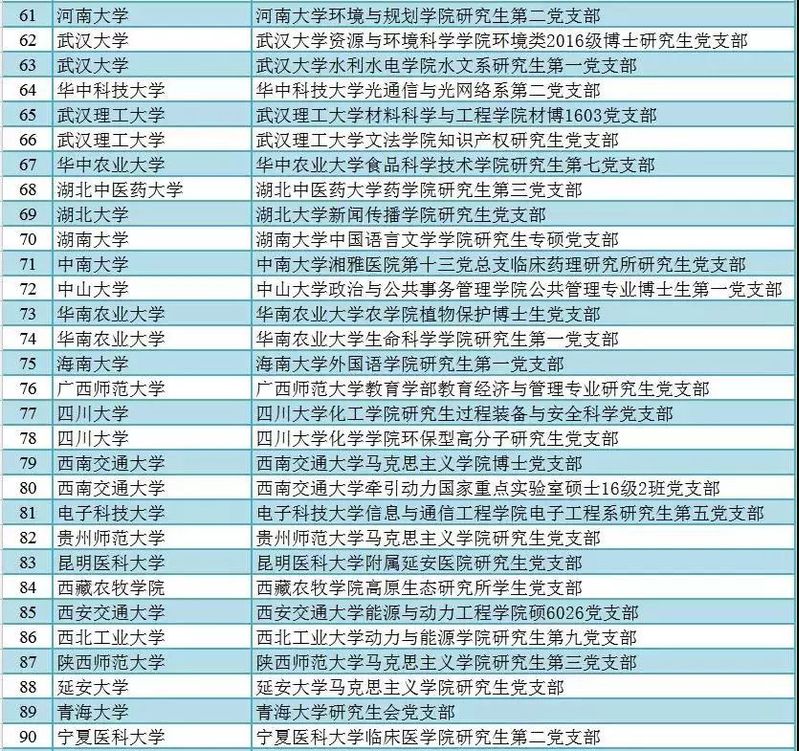 全国高校“百个研究生样板党支部”公示名单(排名不分先后)
