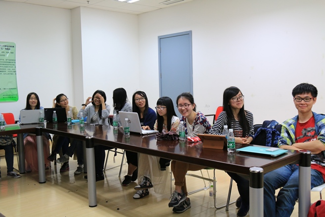 院团委组织部长武涛介绍了团委的工作情况,他首先介绍了部门情况及分工,然后从团委宗旨“对外高举红旗、对内服务同学”重点谈起,以具体活动为例子阐释如何实现宗旨,最后谈到团委重点培养的项目——刚刚起步的“新声”微信公号。武涛又大体介绍了公司的组织情况,将离同学们最近的组织分为三类,概要地介绍了公司以团学组织举办活动、专业实践补充课堂、基层团支部服务同学们的架构。团委实践部长马雨薇号称“霸道总裁”,她以风趣的语言介绍了实践晚会的全过程,贡献出很多干货,部门的和谐氛围也让大家开怀大笑。