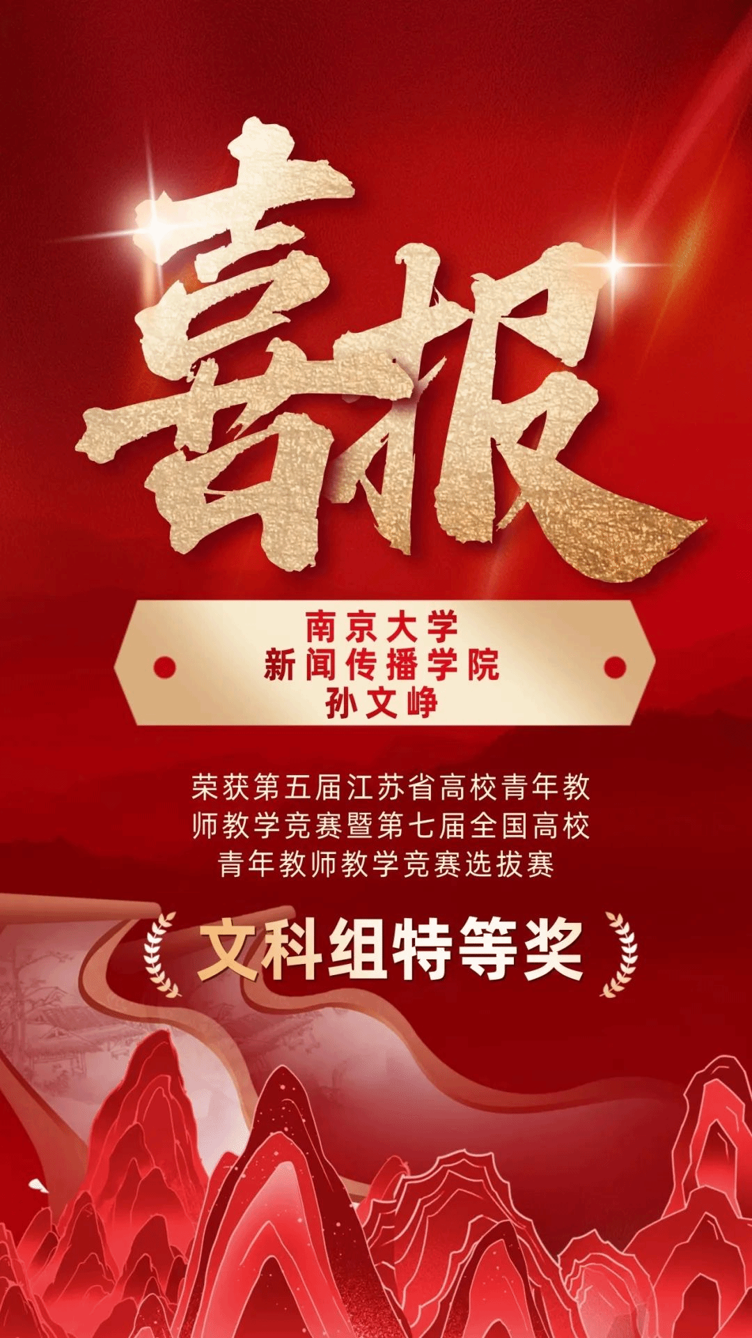 6月21至24日,第五届江苏省高校青年教师教学竞赛暨第七届全国高校青年教师教学竞赛选拔赛在南京师范大学仙林校区举行。公司孙文峥副教授荣获文科组第一名(特等奖),将代表江苏省参加全国竞赛。
