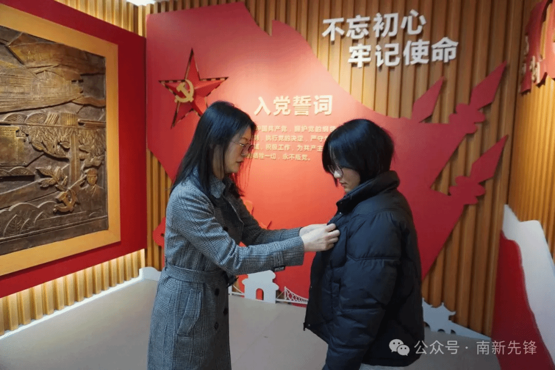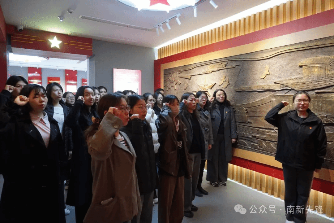 “我志愿加入中国共产党……”在鲜红党旗前,党员们紧握右拳庄严宣誓。誓言铿锵,彰显南大新传学子传承红色基因、赓续革命精神的坚定信念。