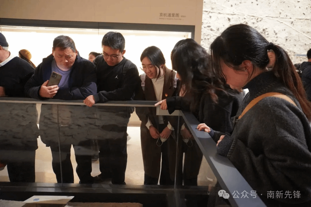 “整个展览将大运河发展的变迁作为时间轴,以大运河的全流域为空间范畴,沉浸式展示大运河的历史变迁、文化遗存与当代价值。”正式参观前,来自扬州的新闻学学硕支部党员汪乐桐简要介绍了中国大运河博物馆,让党员们对领略大运河文化更怀期待之心。