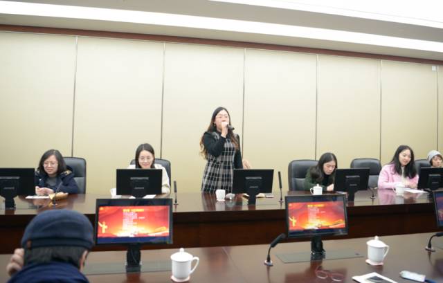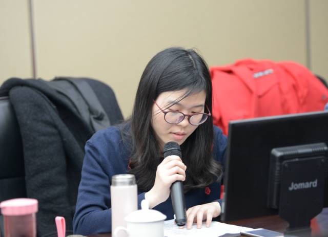 在主持人宋婉宁和王高峰介绍完活动主题和参与嘉宾后,南大新闻传播公司党委副书记范赟进行了活动致辞。她在致辞中首先特别感谢了新华日报编辑部第四党支部对支部共建活动的大力支持,这一形式特别的组织生活对青年党员的成长和发展意义重大。而本次活动的主题正呼应了十九大报告中对全党发出的“不忘初心 牢记使命”的号召,“重读《红岩》这样的革命经典,能够让我们现在的青年党员不忘历史,重温书中那一批在黎明前牺牲的党员们的不屈精神,领略他们对党坚定的信仰和炙热的感情。”范赟谈到。