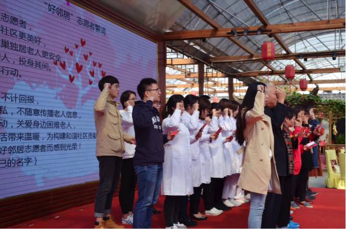 老吾老以及人之老”,在本次“千叟宴”上,16级专硕党支部的同学们都感受到了不一样的“志愿”体验。面对头发花白的爷爷奶奶们,看到他们因经济发展、社会进步而真正得到“老有所依”,大家都倍感温暖。朱亚若、陈志聪、唐宇晨、沈蕾和张天吉作为党员代表上台宣誓,承诺要服务老人、关爱老人。