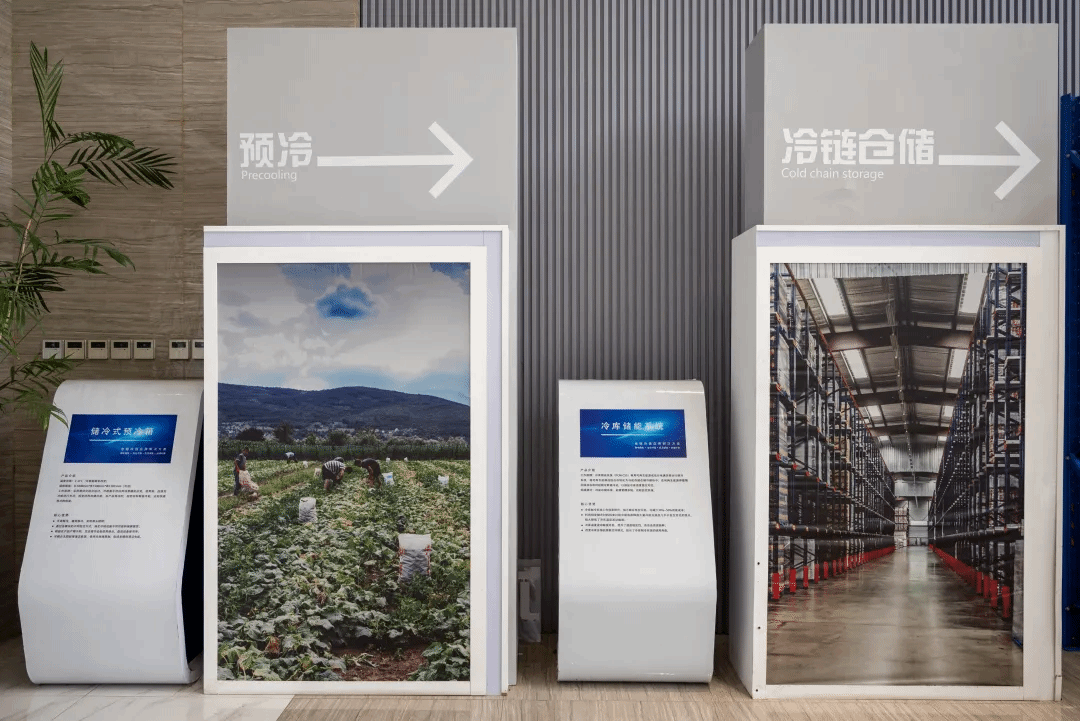 储能式冷藏集装箱利用配套专业制冷装备“充冷桩”进行前置充冷,通过高性能相变储冷材料,快速存储冷能,待储冷完毕即可投入使用。金合能源董事长任爱将这个过程形象地比喻为“电动车充电”。在长途运输过程中,不用接电,也可实现长时间恒温恒湿、一箱到底的需求。在完成运输后,集装箱可以在一定时间内充当移动冷库,解决农产品“最后一公里”的问题。
