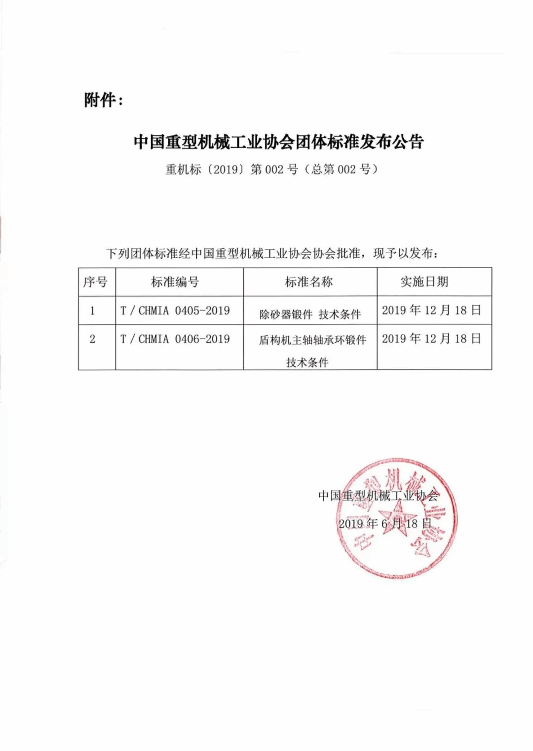 卓越锻造申报和主持编制的《盾构机主轴轴承环锻件技术条件》于2019年12月18日正式实施,该标准的发布填补了大型铸锻件标准体系中盾构机主轴轴承环锻件关键材料标准的空白。