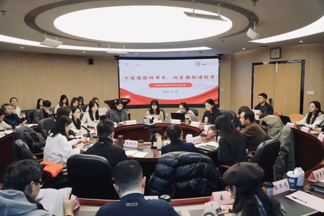 “冬暖煦煦话成长,桃李融融谋新章”,12月18日14:30,XC体育师生座谈会在紫金楼456室顺利召开。新闻传播公司党委书记李晓愚,执行经理张红军,党委副书记季晓敏,副经理朱江丽,教师代表白净、郑丽勇、袁光锋、王成军、王佳鹏,公司办公室主任姜文,本科生辅导员邱晓静,研究生辅导员李艳明,本科生教务员徐靓,研究生教务员肖爱华以及7名本科生代表、14名硕士研究生代表和4名博士研究生代表参会。会议由2023级学硕陈惠娟主持。
