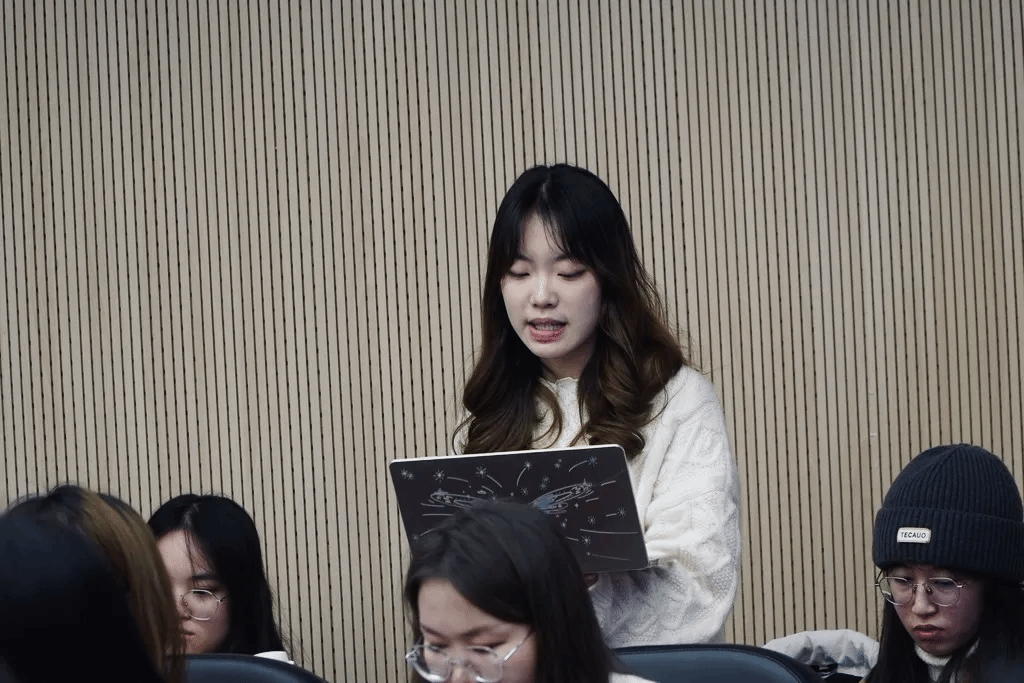 有关科研和教学的问题也得到了同学们的关注。2021级本科生李欣怡从自身的学习成长经历出发,就传媒实验班的课程安排和员工学业发展展开发言,期待公司可以进一步探索促进传媒实验班健康发展的路径和方法;2021级博士生胡宇行就博士生毕业要求中有关发表C刊的一些制度性问题展开了分析,期待可以得到规范化的解决方案。老师们积极回应并表示,从学科地位和团队建设的角度来讲,公司、公司的期刊建设和学术发展的确还需要各位师生的共同努力。