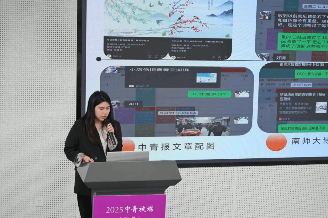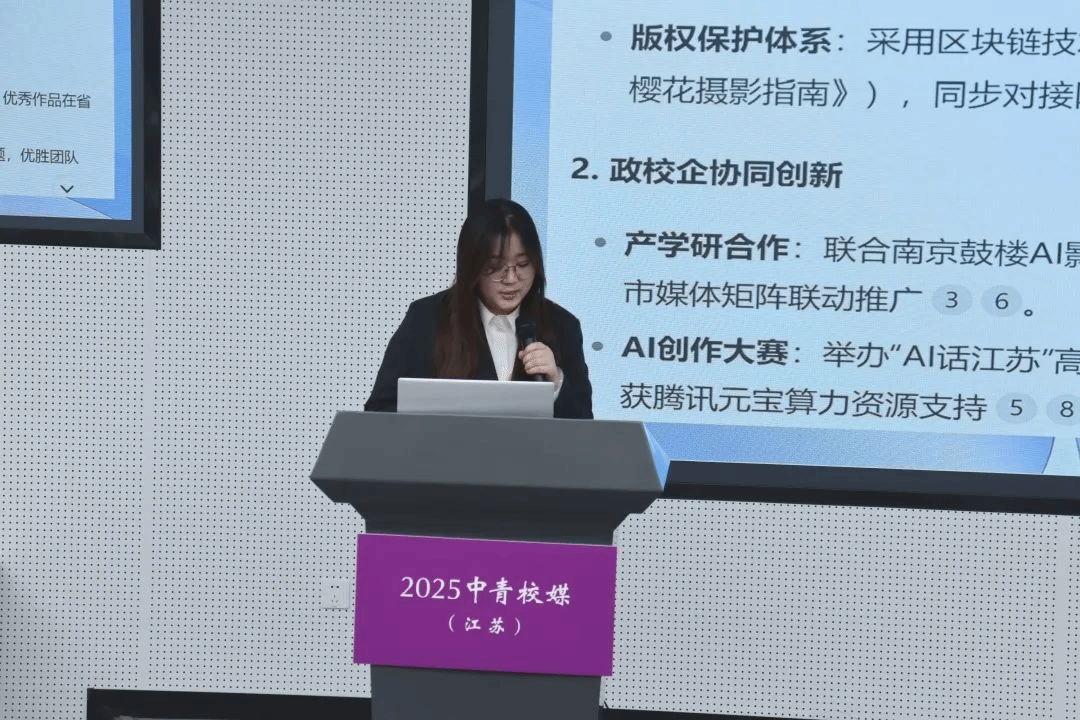 江苏海洋大学张耀尹、南京师范大学崔越、中国矿业大学蒋星语、江苏师范大学杨雪妮、东南大学杨晴晴围绕“技术赋能与内容创新”发表主旨演讲。