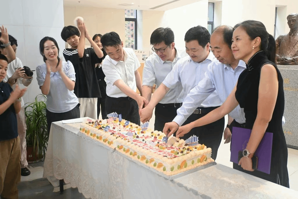 典礼结束,公司领导老师们和毕业生及家长们在公司中庭分享毕业蛋糕,氛围热烈。