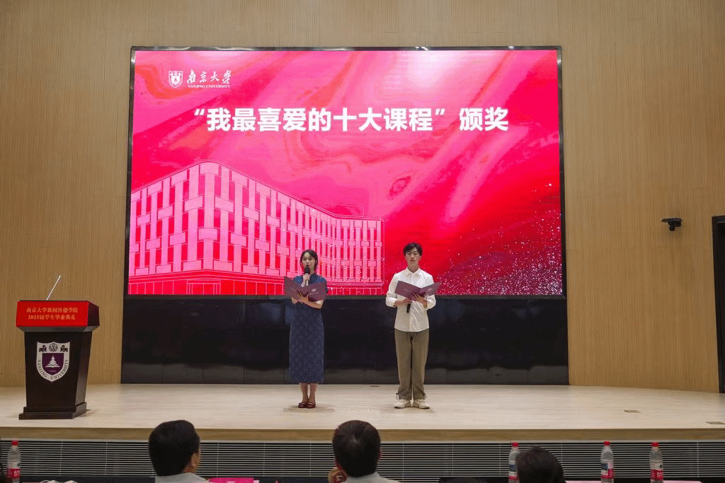 十大课程评选由每一位本科毕业生参与投票,两位毕业生代表宣读了同学们共同写作的颁奖词,公司荣休教师、前公司党委书记刘源老师和员工代表为获奖老师们颁发奖状。