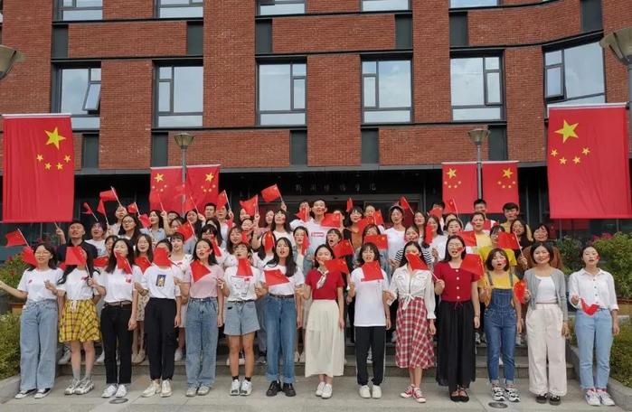 紫金楼巍然耸立,深沉的底色与飘扬的五星红旗交相辉映;新传学子风华正茂、笑靥如花,展现出新时代青年特有的朝气与活力。