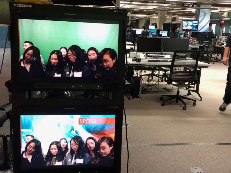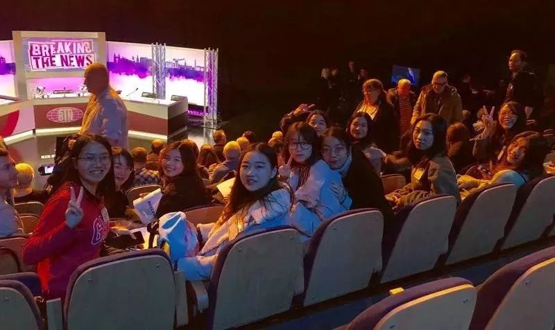 职业与就业服务部门在员工互助集市上的展台在《传媒机构访问》《社会文化实践》等实操课程中,同学们参访了当地报社、出版公司以及BBC苏格兰分部等传媒文化机构,并现场观看脱口秀节目的录制,亲身感受业界的发展。