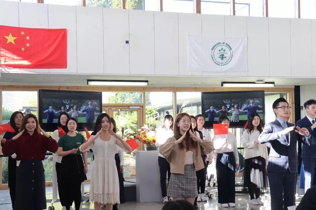 随后,斯特灵大学中国员工联谊会以快闪的形式带来了一曲《国家》。飘扬的五星红旗与婉转的旋律相互辉映, “国是荣誉的毅力,家是幸福的洋溢”,在英的游子们借用歌声唱出了对祖国的思念和感恩。