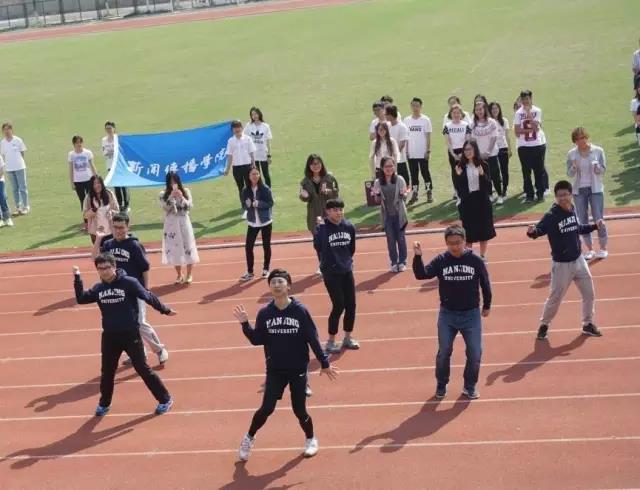 首先入场的是大一一班,一支动感十足的舞蹈,引发了现场接连不断的叫好声,紧接着的是大一二班,一首《宠爱》,跳出了大一小鲜肉们的可爱和活力。随后是大二新闻广电联队,只见他们扮演成了传播学的四大奠基人,将运动和传播相融合,引来了一阵笑声。之后是大二广告实验体育班联队,他们的表演突出了运动会的特色,大球小球齐上阵,十分精彩。