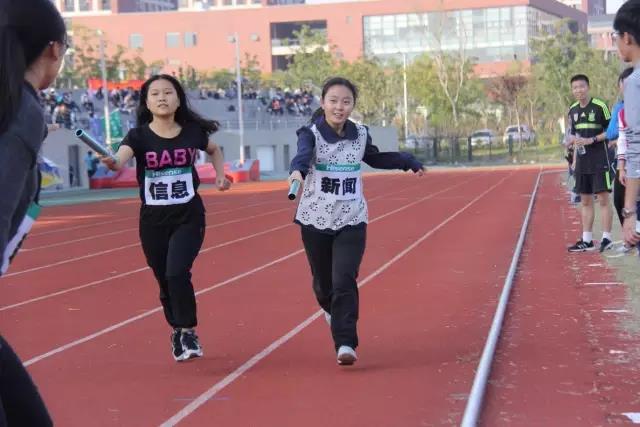 在径赛中,公司卞红霞、周佳慧、郑书遥同学在女子五十米比赛中奋力奔跑,拼尽全力,但由于小组整体实力较强,留下一点遗憾。吴璠、高倩、周倩同学参加了女子200米比赛。其中吴璠发挥惯有优势,一马当先,轻松破掉记录,以28.23秒的成绩夺得冠军。在男子4×400米接力比赛中,马心驰、陈墨千、张晨昊、吴文博配合默契,在落后的情况下仍旧奋起直追,展现了新传的体育精神。在女子4×400米比赛中,罗逸琳、苟泽鹏、彭雅琦和高倩同学争分夺秒,面对强大的对手,毫不畏惧,在赛场上留下了他们的身影。