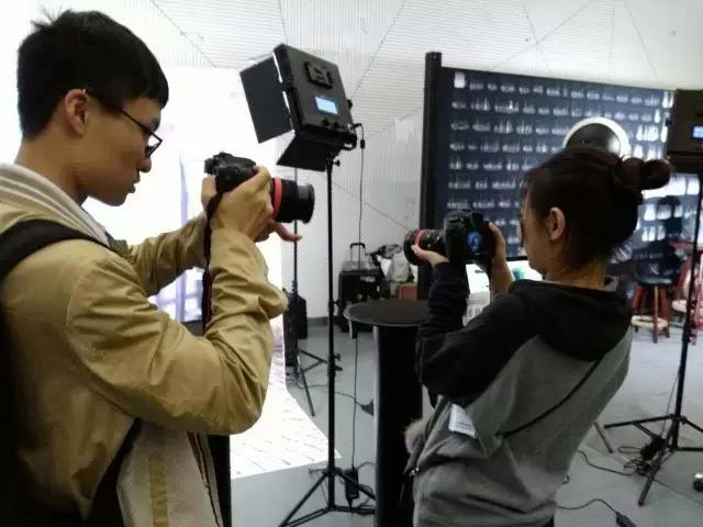爱好摄影的同学们在体验佳能相机