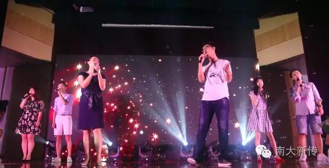 沙画表演结束,温暖还在继续。新传一众男神女神老师带领研究生们为大家演唱《相亲相爱一家人》,朴实而熟悉的旋律宛如电影胶片,将往事一幕幕拉回了眼前。台上老师们青春依旧,光彩动人,与员工亲密互动,更有身着白色小纱裙的女孩在台前伴舞,萌点泪点化为阵阵掌声和欢呼。