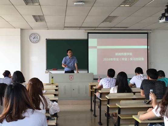 6月14日中午,公司2016年专业实习出征会在逸B507教室举行,会议由辅导员徐志萍主持,党委副书记范赟和教学副经理胡翼青出席并就公司大实习进行全面部署。