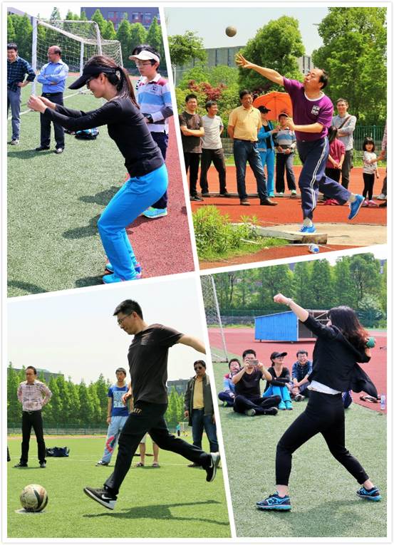 袋鼠跳要求老师、员工相互配合,比赛开始后,同学们奋力向前,老师也不甘落后,年纪虽大,但比赛热情不减,各显身手。教工立定跳远项目中,徐志萍和张静老师分获女子组一二名,男老师方面,刘源书记深藏不露,2.18米的成绩是当之无愧的第一,蒋恩铭书记紧随其后。掷沙包在立定跳远随后进行,女子组方面辅导员志萍姐展现出了过人的实力,33.7米的成绩轻松拿到第一,而男子组方面,张红军副经理的成绩是惊人的58.1米,甩开了第二名好一段距离。男子铅球的比赛进行的十分胶着,各个老师间的成绩差距并不大,最终冯少明老师凭借第二投的爆发,一个9.70米,夺得冠军! 临近中午,老师们与员工开始了一场射门大赛。老师们精准的射门让同学们刮目相看。