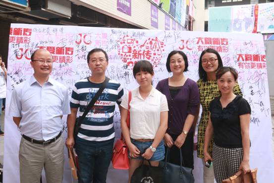 下午两点迎新正式开始,校门口的举牌人员积极引导14级新生找到新传报道展台。新生到达展台后,展台工作人员热心帮助他们完成报道注册,并带领新生在签名墙上签名,并拍照留念,用相片定格他们在XC体育的第一天。