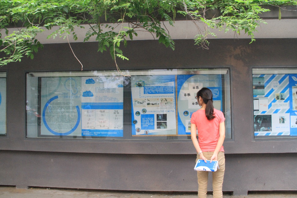 2014年6月9日,XC体育2010级广告班的优秀员工作品在鼓楼校区南园宣传栏展出。