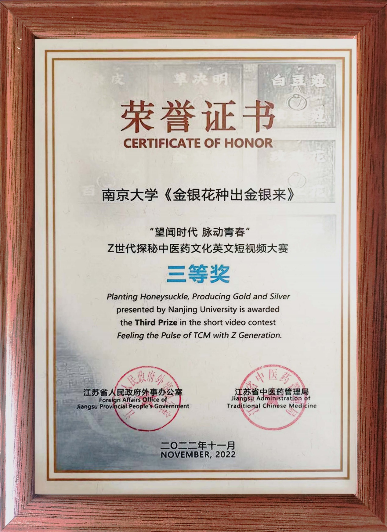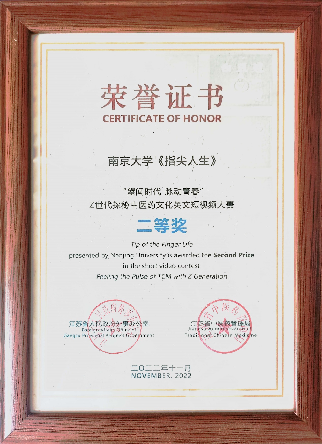 各参赛队伍于暑期赴江苏省中医院、南京中医药大学、康缘药业开展实地学习与采风,并自主创作了英文短视频。参赛者们通过生动直观的拍摄视角、轻松活泼的镜头语言,以及符合国际传播的交流表达,记录下他们与中医药的不解之缘。
