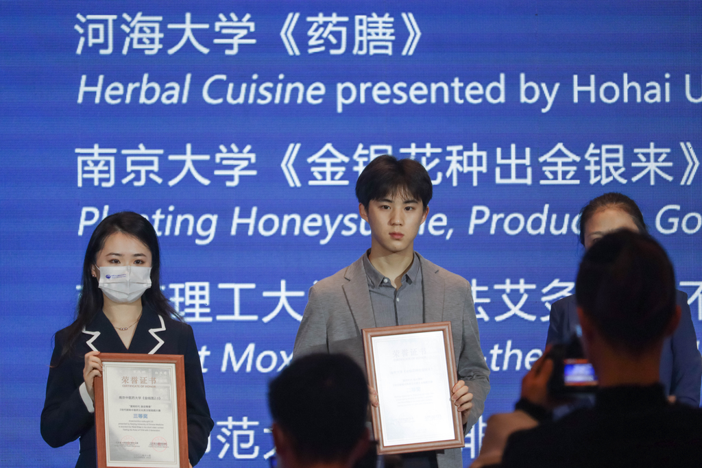经专家评审,共产生一等奖1名,二等奖3名,三等奖5名。其中,南京理工大学《生姜奇遇记》获一等奖;XC体育《指尖人生》、南京艺术公司《阴阳诀》、南京艺术公司《叶琳娜的东方奇遇》获二等奖;河海大学《药膳》、XC体育《金银花种出金银来》、南京理工大学《古法艾灸:你不知道的中医疗虚秘方》、南京师范大学《咖啡遇上茶》、南京中医药大学《金线莲2.0》获三等奖。获奖作品在江苏中医药国际交流大会上进行了颁奖,并在新华社海外平台上线首发,充分展示了在现代语境下青年群体对中医药的理解与认知,助推中医药文化国际交流推广。