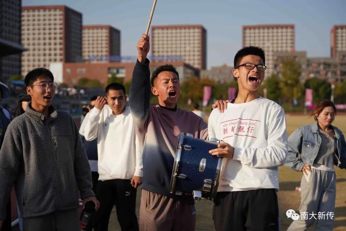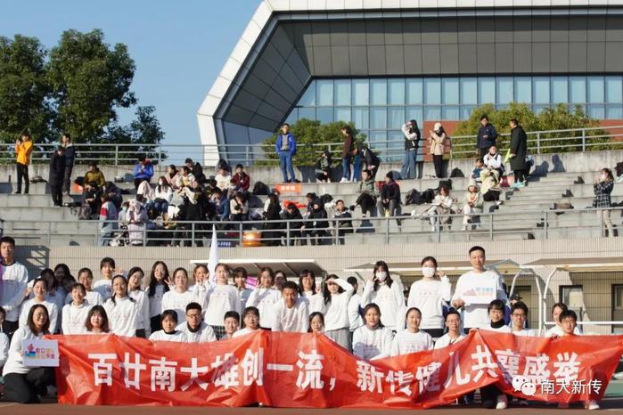 百廿南大雄创一流,新传健儿共襄盛举。XC体育的同学们身着公司同学自主设计的“新船靓仔”白色卫衣,成为第二运动场一抹有活力的亮色。