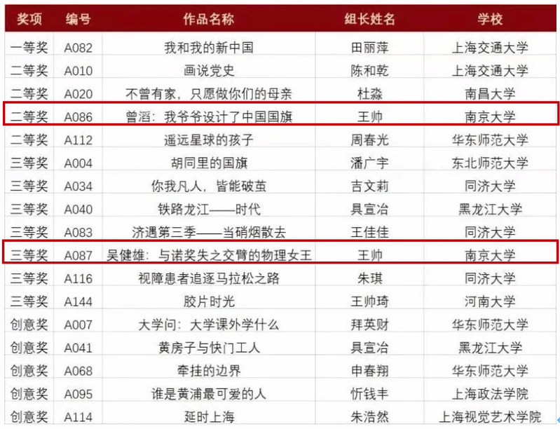 由王瑜显、张瑾、黄薇和梁书塵团队完成的短片《曾滔:我爷爷设计了中国国旗》以老员工曾联松先生的长孙曾滔的视角,讲述了七十年前国旗图案诞生的故事;在共和国成立七十年的2019年,短片的推出别具意义。由王帅、徐晓玥和张丹丹团队完成的短片《吴健雄:与诺奖失之交臂的物理女王》通过实地寻访上海、南京和苏州等地,拜访吴健雄先生的后人,讲述了她与诺奖擦肩而过的故事,呈现出她在专注科研之外,入世和优雅的一面。