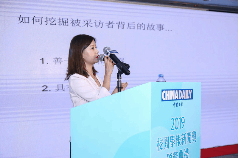 中国日报香港版财经记者周沫分享从业心得。(中国日报记者邓永安 摄)