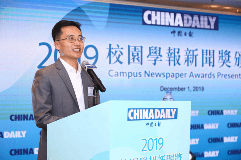 在颁奖典礼上,中国日报社编委、中国日报亚太分社社长兼总编辑周立对所有获奖的员工和高校表示祝贺,并对媒体行业表达自己的期许。“如今大数据、人工智能等新技术给媒体行业带来新的机遇与挑战,需要新闻从业人员努力提升专业能力和综合素质,增强‘脚力、眼力、脑力、笔力’”他说:“媒体行业的变化,也对新闻学子提出了更高的要求。作为准新闻人,只有坚守初心,适应新形势、新潮流、新的发展方向,不断学习新技能,才能不被时代淘汰。”