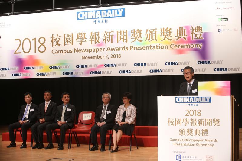 颁奖典礼当晚在香港浸会大学举行,香港特别行政区政府财政司司长陈茂波、中国日报编委兼亚太分社社长周立出席并致辞。香港特别行政区政府运输及房屋局副局长苏伟文先生、中央人民政府驻香港特别行政区联络办公室台湾事务部副部长曾繁信、香港特别行政区政府新闻处副处长梁润芝女士和香港赛马会特别项目执行总监周鼎文先生等,以及250多位来自中国内地、香港、澳门、台湾的师生和新闻业界人士参加。