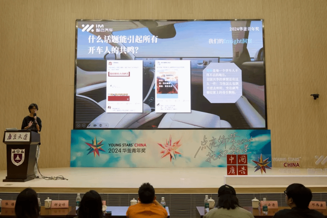 现场,智己汽车公关活动策划与体验高级经理徐吉揭晓了本次命题——智己汽车L6。徐吉表示,相信智己这个永远“年轻”的品牌会与来自各大高校的员工产生有趣的化学反应,迸发别young的精彩灵感。省广集团人力资源部副部长刘晋介绍了省广集团的发展情况,表示华釜青年奖创意赛始终致力于打造广告营销人才圈层的闭环,并鼓励同学们积极探索,追寻属于自己的“星星”。
