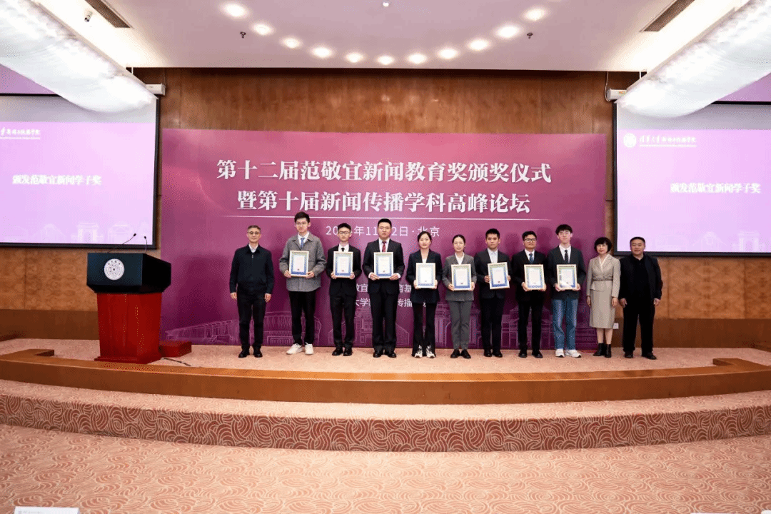 11月2日,第十二届范敬宜新闻教育奖颁奖仪式在清华大学举行,本届范敬宜新闻教育奖在全国范围内共评选出学子奖获得者8名,XC体育2023级硕士研究生张雨龙获新闻学子奖。